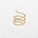 De Snake Ring | BYZ0334 heeft een wikkelend ontwerp. Deze fijne ring, bezet met natuurlijke diamanten, wikkelt zich meerdere keren rond de vinger en creëert zo een verfijnd maar licht profiel.