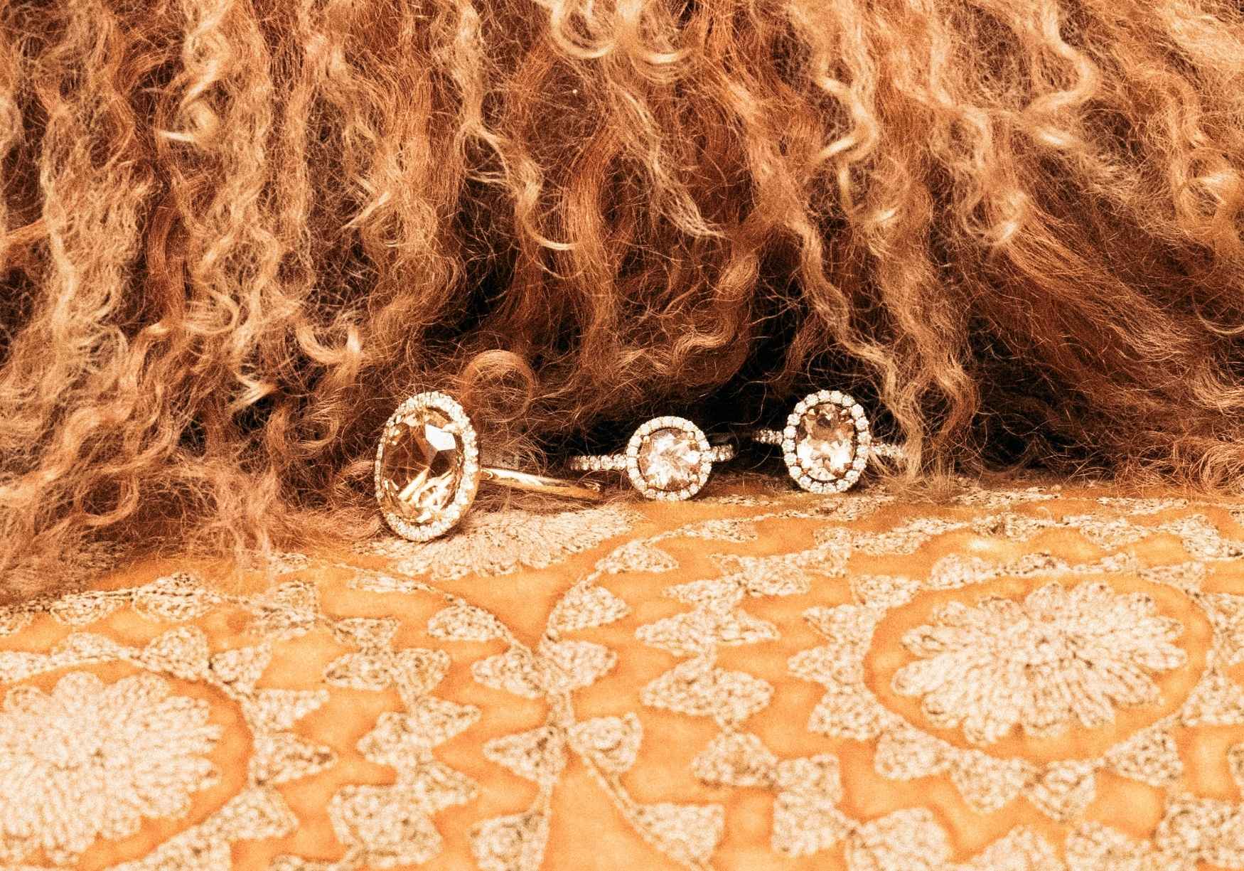 Next, pick the ring style and gold color that suit your taste. From halo settings and side stones to vintage or art-deco designs, the style and choice of 18k yellow, white, or rose gold frame and define the ring’s personality.